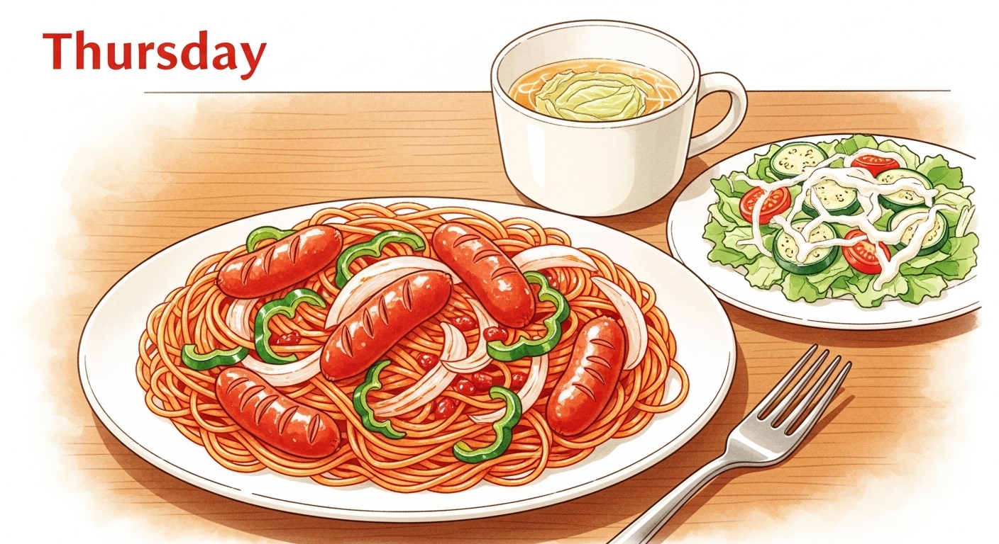木曜日は、週の疲れがピークになる頃。そんな日は、大人も子供もテンションが上がる「喫茶店風ナポリタン」が主役です。